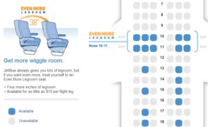 JetBlue için ek gelir kategorisinin en önemli kalemi, “ilave diz mesafesi” olarak tanımlayabileceğimiz nispeten geniş koltuk aralıkları.