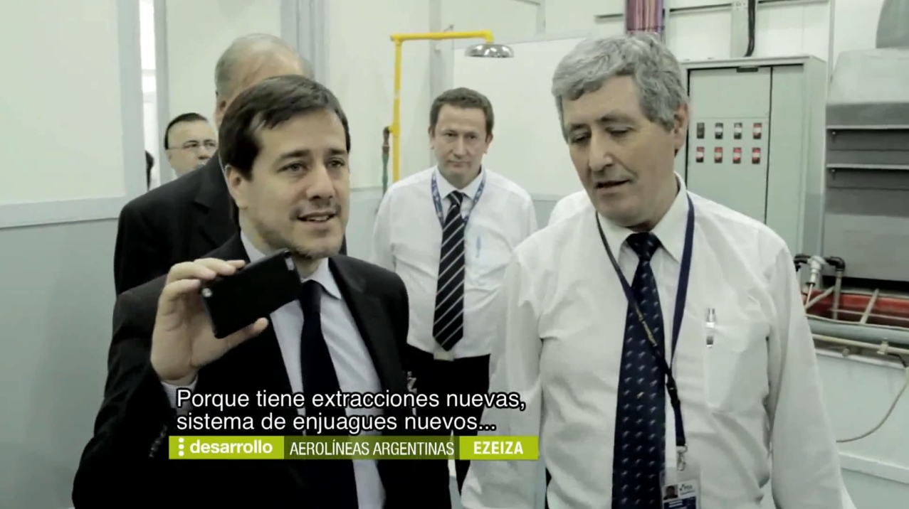 Mariano Recalde, presidente de Aerolíneas Argentinas, recorre el nuevo taller de motores y galvanostegia en la planta industrial de Ezeiza.