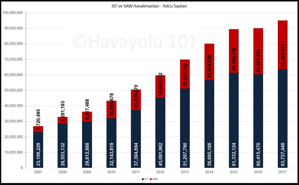 2007 yılında IST ve SAW’ın hizmet verdiği yolcu sayısı yaklaşık 27 milyon seviyesindeydi.