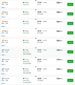 21 Aralık 2020 tarihi için yaptığım bir sorgulamada, IST-ESB seferlerinin günlük 7’ye düştüğünü gördüm. (Covid-19 etkisi)