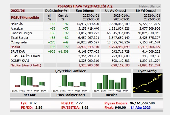 Yine Nisan – Haziran döneminde, 91 milyon Euro’luk net kâr elde edildi. Pegasus, geçen yıl ikinci çeyreğinde 40 milyon Euro net zarar açıklamıştı.
