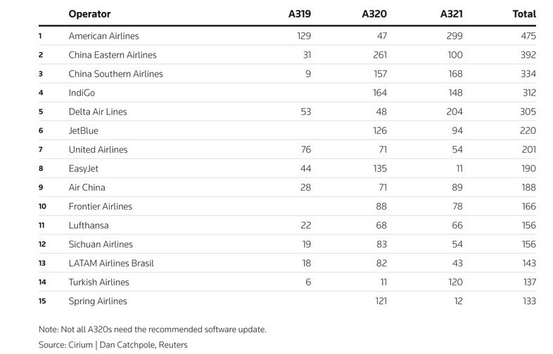 Dünya genelinde A320 ailesinden toplam 11 bin kadar uçağın aktif olarak hizmette olduğu söyleniyor.