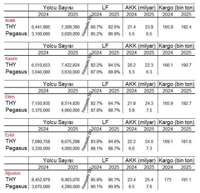 Her iki havayolumuz da geçen senenin aynı ayına kıyasla son derece güçlü bir performans sergiledi.