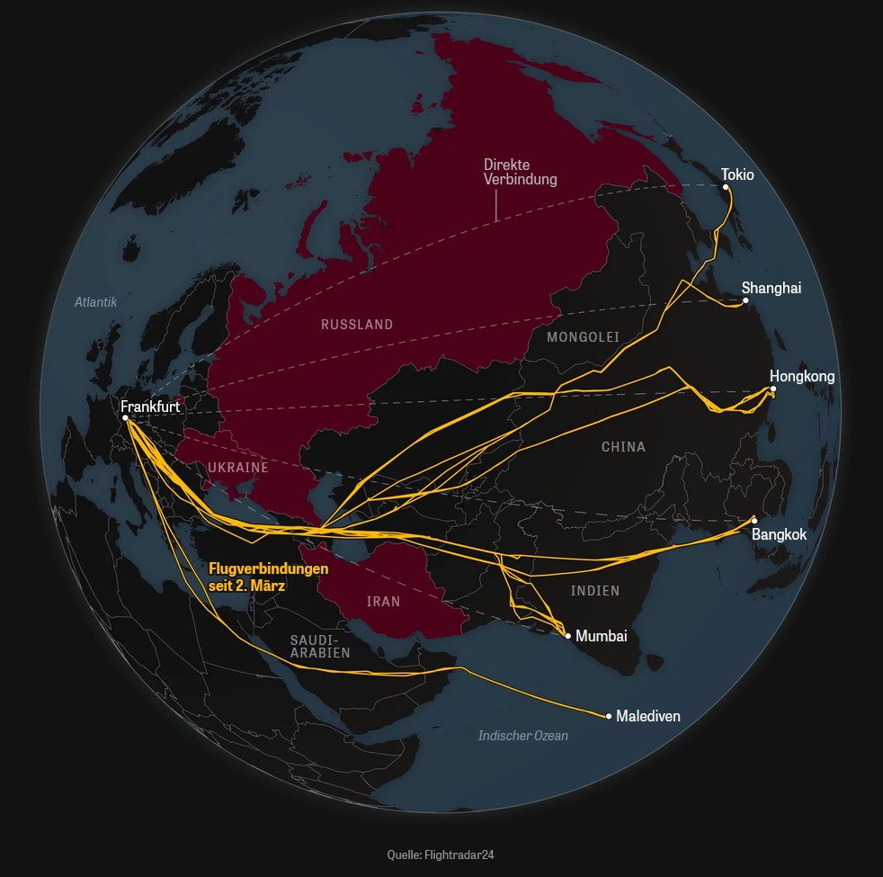 Frankfurt ile Doğu Asya’daki bazı noktalar arasındaki rotalar (Mart 2026)