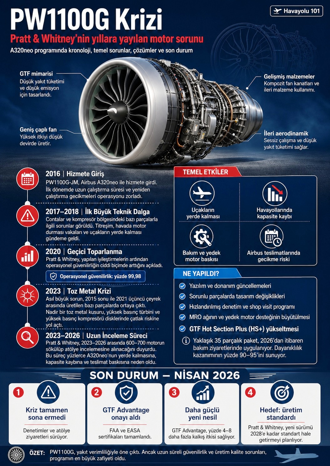 Dolayısıyla bu sorun özellikle 2015 – 2021 yılları arasında üretilen uçakları etkiliyor. Bununla birlikte, yine PW1000G ailesi motorlarda, çeşitli performans sorunlarının yaşandığını da unutmayalım.