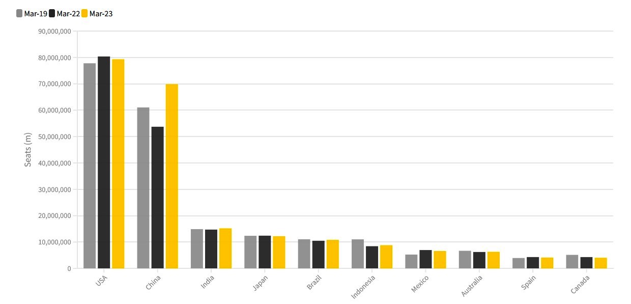 Dünyanın En Büyük İç Hat Pazarları (Mart 2023)